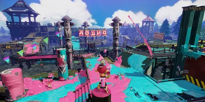 • Team up and take on other teams in an action-filled battle to cover the level with as much ink as possible. Spray walls to access hard-to-reach areas.