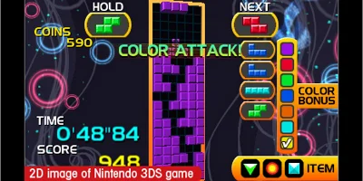 With over 20 Tetris game modes, there are countless hours of fun to be had. Enjoy the beloved Marathon mode, or drop an AR Card on the table in front of you and watch the game come to life in all-new augmented reality modes. Compete in non-stop battles in the Computer Battle mode, race against the clock in Fever mode, or hold on for as long as you can in Survival mode. Spice things up with the Party modes which include an impressive array of new and challenging Tetris game modes such as: Fit, squeeze blocks into specifically shaped holes; Bombliss™ Plus, use bombs to explode blocks coming up from below; Capture, strategically cover stars on both sides of the Matrix with Tetriminos; and Jigsaw, solve picture puzzles or import your own pictures! Make sure you also look out for new items for Fever mode, made available via SpotPass.