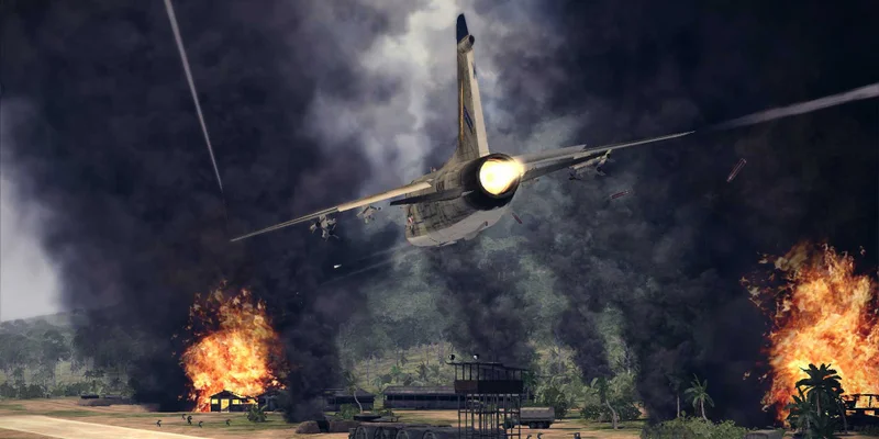 Neem plaats achter het stuur van gierende straaljagers en helikopters, allemaal authentieke oorlogsvliegtuigen uit de Vietnam-tijd. Beleef explosieve en ongeëvenaarde luchtgevechten terwijl je Joe vergezelt op zijn weg om een echte Ace te worden.