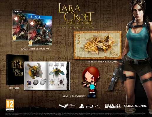 Deze Gold Edition van Lara Croft and the Temple of Osiris bevat vele exclusieve items zoals een 3" Lara figurine, een artbook vol nooit eerder gepubliceerde conceptuele kunst, een uitvouwbare kaart van de Overworld en een Season Pass. De game is verkrijgbaar op de PlayStation®4 en Windows® PC